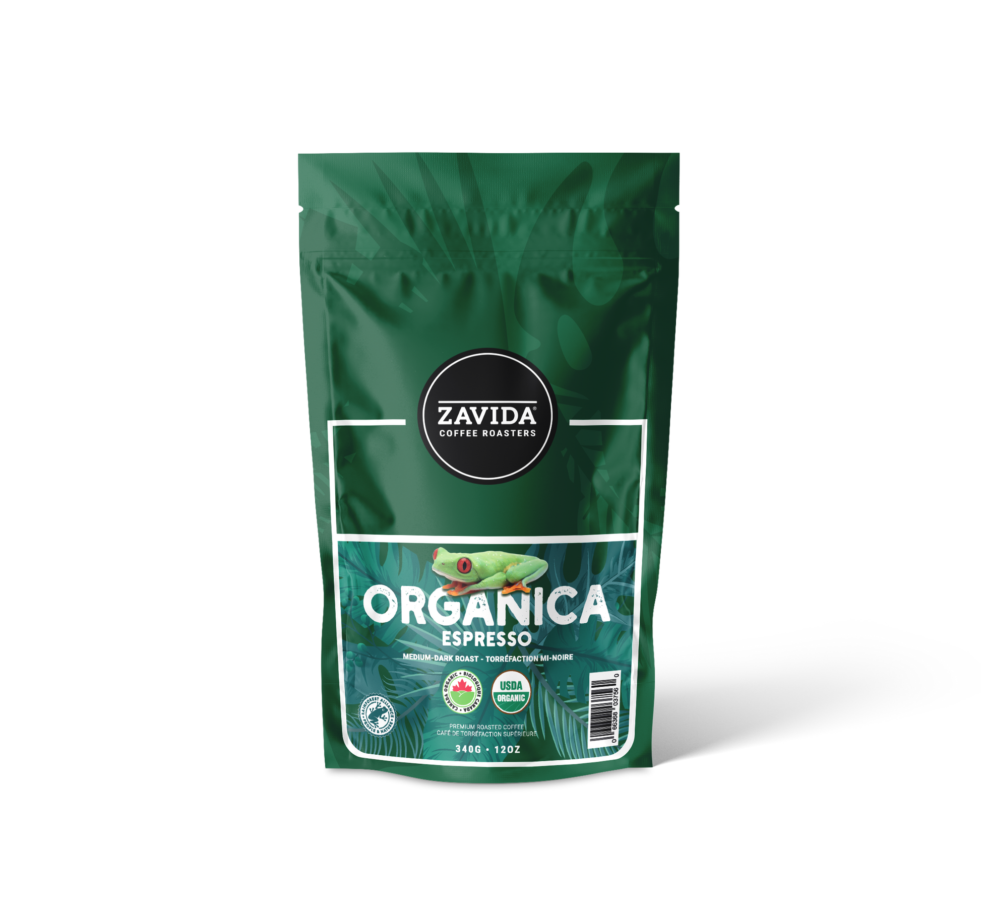 Aromă catifelată, robustă și o cremă excelentă te așteaptă cu acest amestec natural și sustenabil de 100% cafea Arabica. Zavida este mândră să ofere cafeaua noastră espresso de semnătură, organică și certificată 100% Rainforest Alliance™. Cultivată în mod natural pe ferme certificate care promovează responsabilitatea socială și de mediu, Organica Espresso este un blend remarcabil de boabe Arabica sustenabile, cultivate în principal la umbră în America Centrală și de Sud.